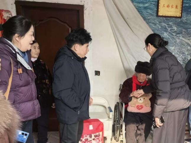 标题:民族圣火 爱心传递 爱心企业暖冬行 百岁老人享温情