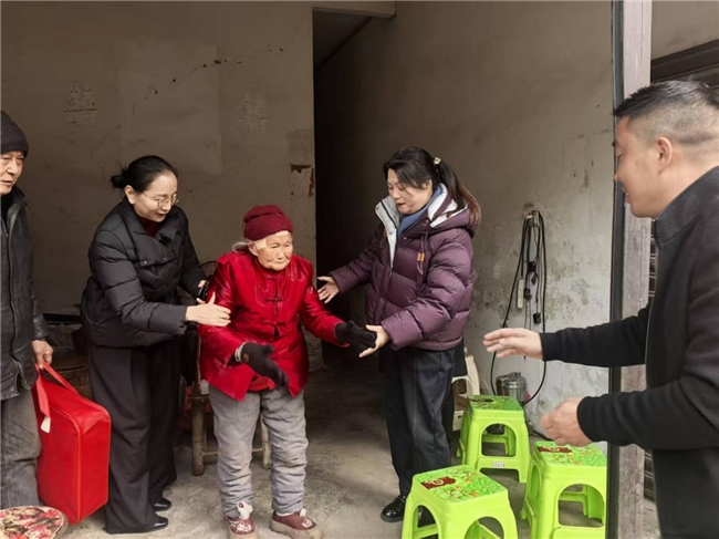 在区慈善会会长张明霞的陪同下,郑朝芳一行深入乡村,先后走进百丈镇千尺村、黑竹镇黑竹关村等地的百岁老人家中。每到一处,都与老人亲切交谈,亲手为其送上毛毯,同时致以新春的美好祝福。老人们脸上洋溢着幸福的笑容,连声道谢。