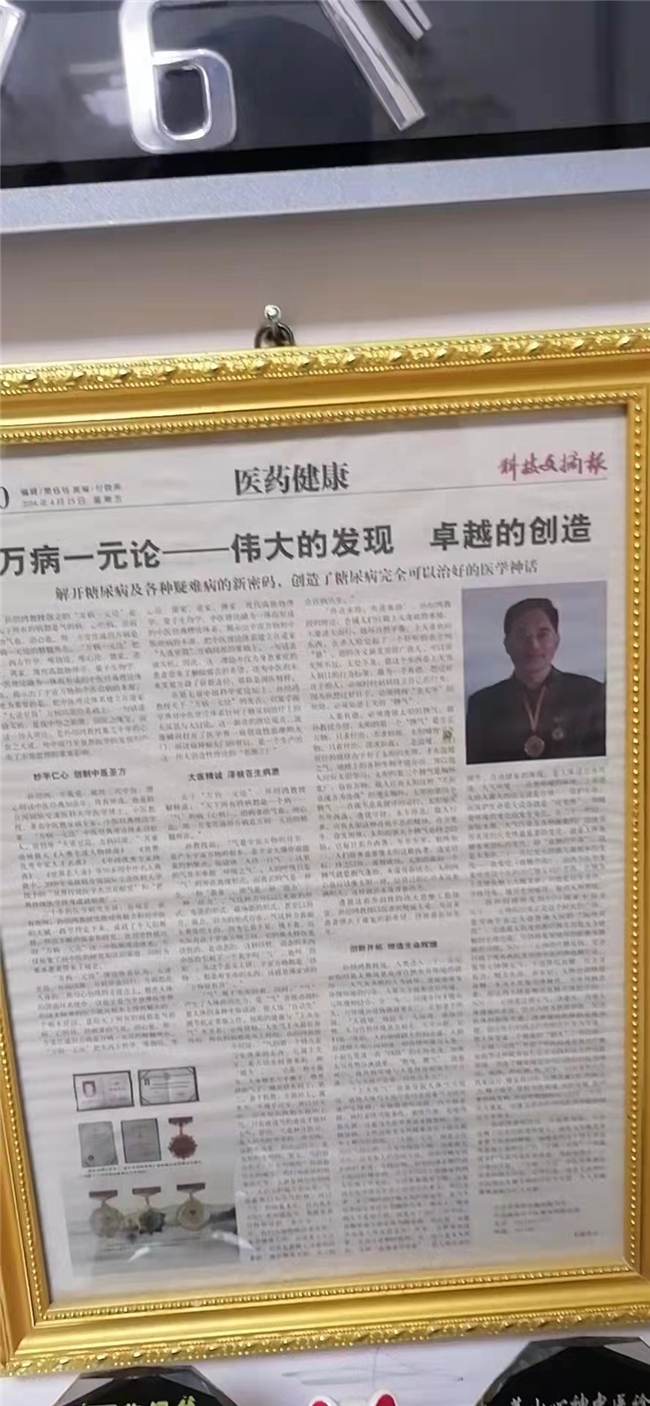 2016年7月1日中国科技部科技文摘报以“诺贝尔医学奖”的申报项目做了整版报道,标题为“孙紹鸿中医教授:冲刺诺贝尔医学奖的卓越中医经典体系~万病一元论”,由此在人类历史上树立了一座千古不朽的丰碑。足以证明,在这个假医庸医横行的特殊时代,“万病一元论”中医经典理论体系的问世,必将引发一场史无前例的中医理论及糖尿病治疗的大反思。借中华文明复苏之曙光,这项足以冲刺诺贝尔医学奖的卓越理论体系必将为人类健康事业做出卓越贡献。